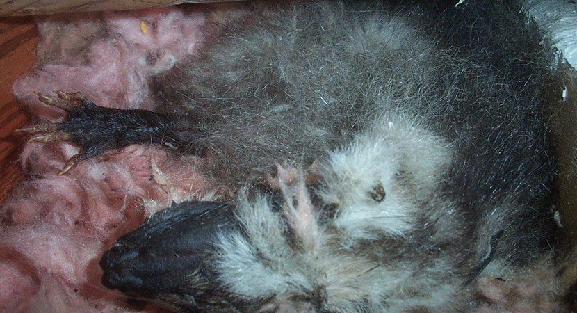We are experts in dead animal removal, and take our job seriously. When removing dead animals, we do a COMPLETE job — not only do we remove the dead animal from your home or yard, we also decontaminate the area, deodorize it, and dispose of the animal or cremate it. If you aren't sure whether the stench in your house is due to a rotting carcass or another reason, we can sniff it out with our noses from our years of experience. We remove dead raccoons, dead opossums, dead skunks, dead squirrels, dead birds, even dead dogs and cats. We frequently remove dead rodents from inside walls, because poison kills rats and mice, who die in your house. We completely solve your dead animal problem by taking these steps: